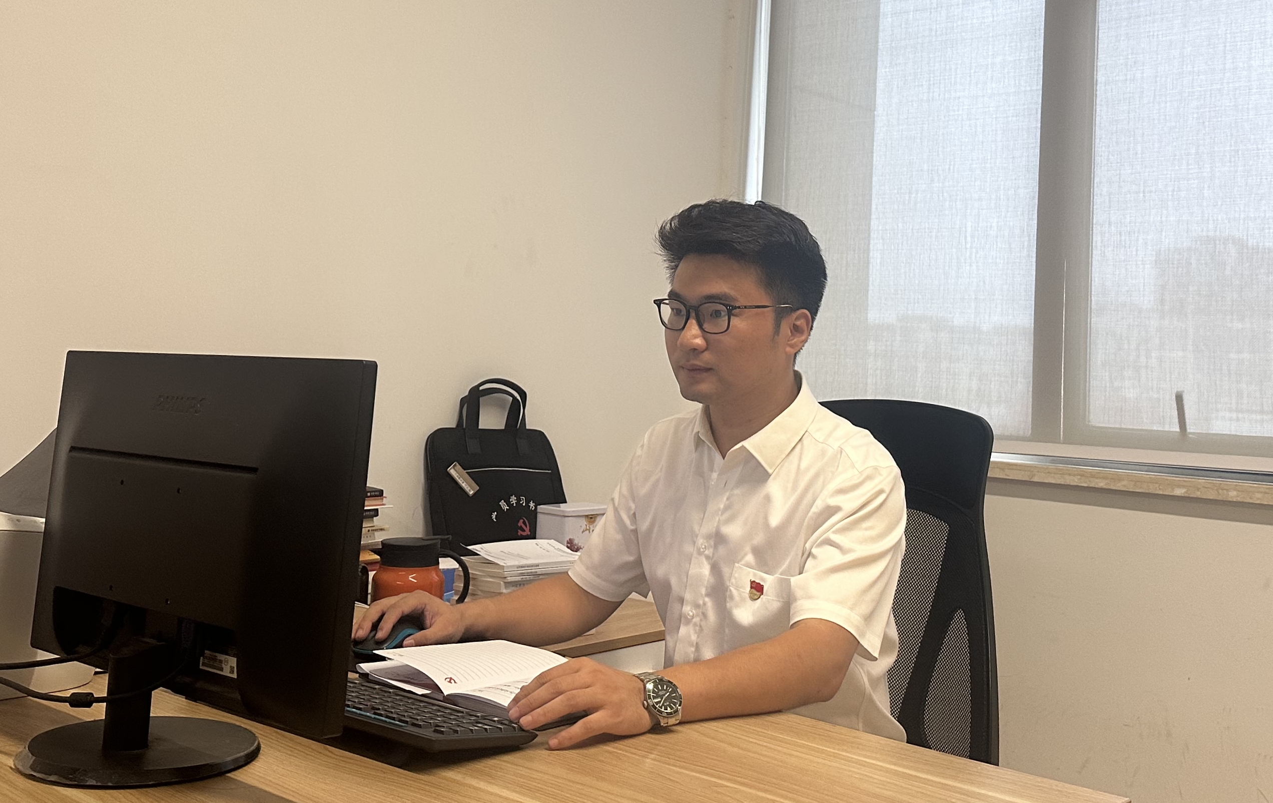 黨組織一聲召喚,他沒有一絲遲疑 “我報名參加”,立刻加入第一批黨員先鋒隊,帶起疫情志愿者袖標,投身于保護園區(qū)的工作中:仔細檢查和登記進入園區(qū)的每一輛車、每一名人員,量體溫、查驗安康碼、行程碼、核酸報告,跟蹤人員進出園區(qū)時間、耐心的提醒人員戴好防護口罩……