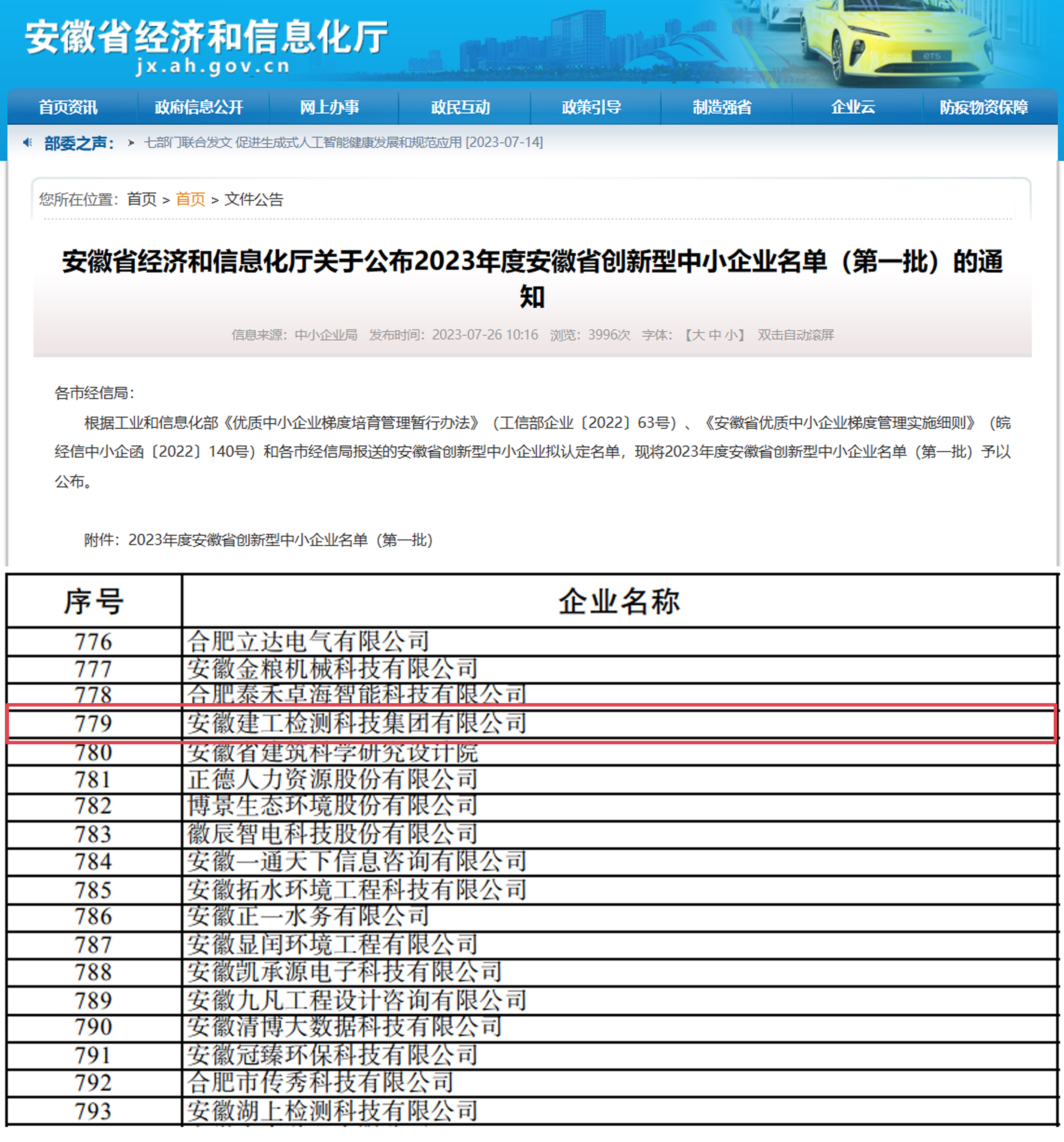 近日,安徽省經(jīng)信廳公布了2023年度第一批安徽省創(chuàng)新型中小企業(yè)名單,建工檢測(cè)名列其中!