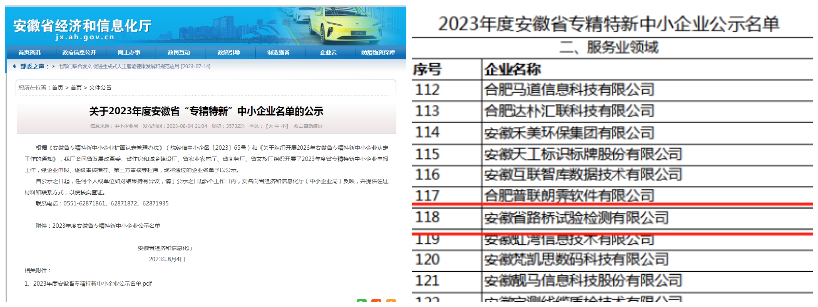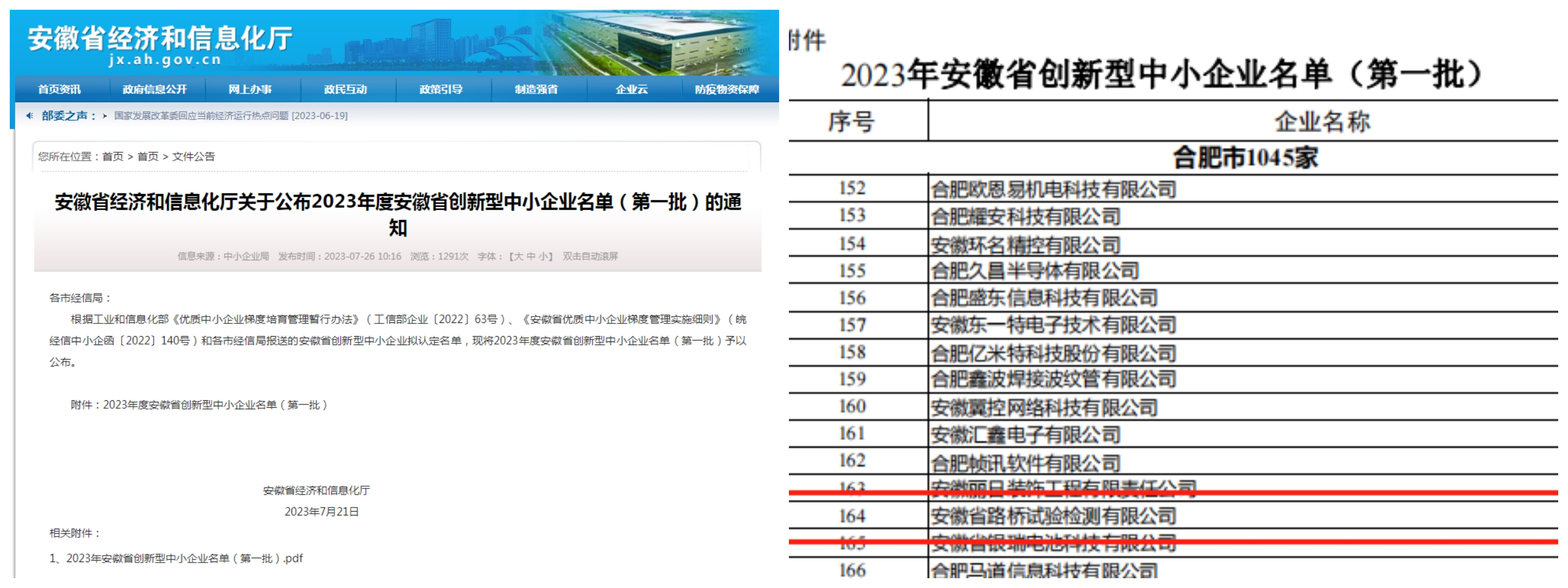 近日, 安徽省經(jīng)濟(jì)和信息化廳發(fā)布安徽省2023年度“創(chuàng)新型中小企業(yè)”名單(第一批)和 “專(zhuān)精特新中小企業(yè)”名單,安徽省路橋試驗(yàn)檢測(cè)有限公司兩項(xiàng)申報(bào)均獲批入選。