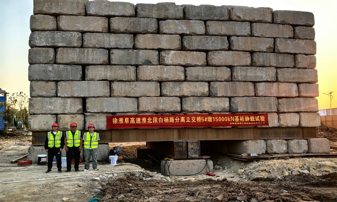 近日,路港通公司承接的徐淮阜高速淮北段白楊路分離立交橋1500噸基樁靜載試驗順利完成。