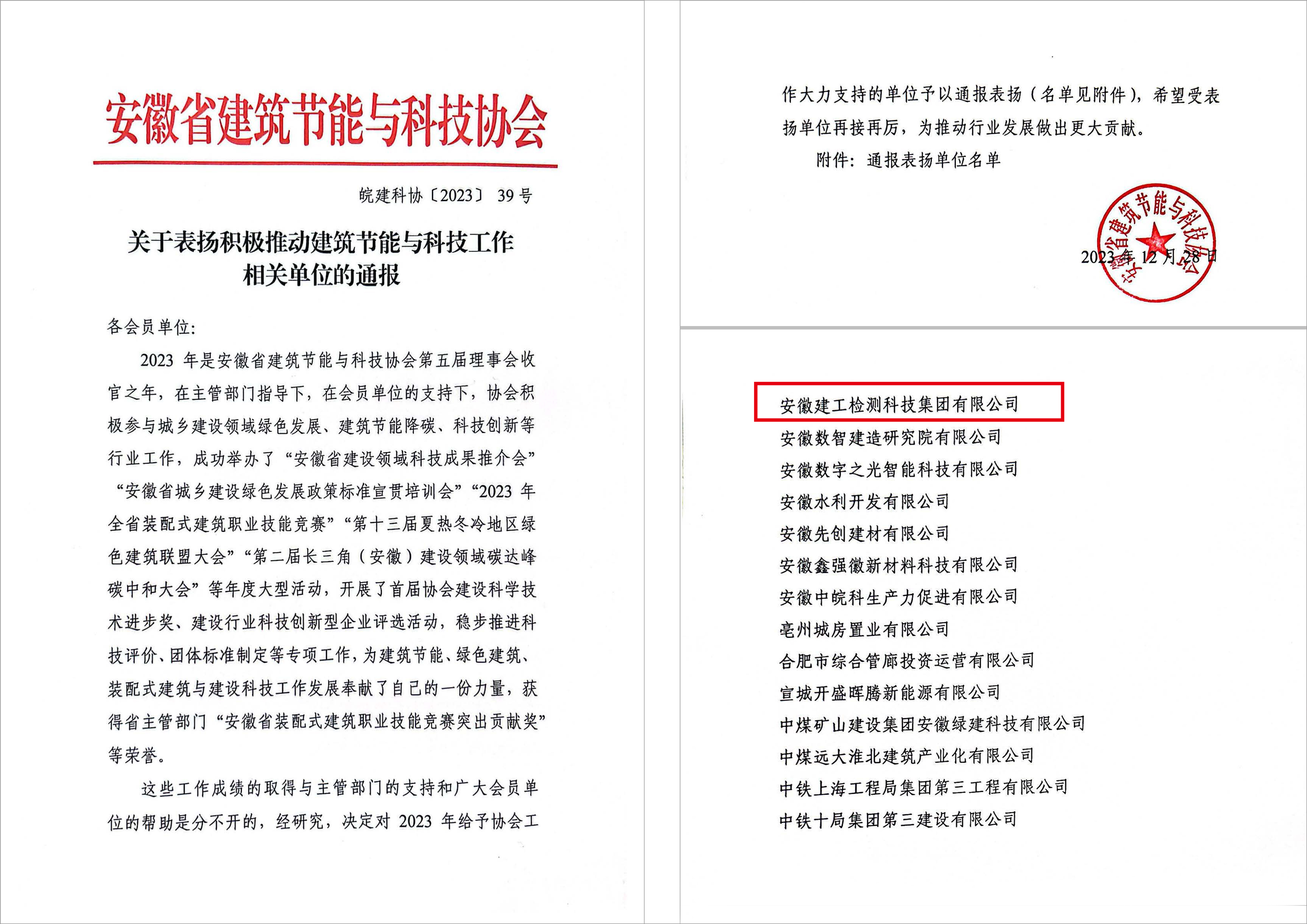喜報!建工檢測獲安徽省建筑節(jié)能與科技協(xié)會通報表揚