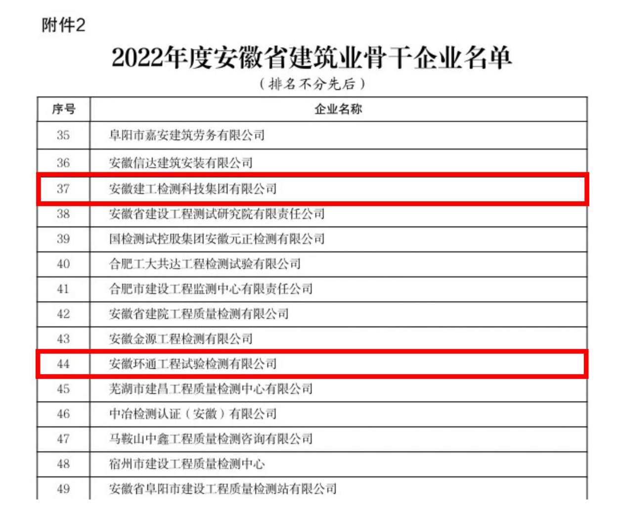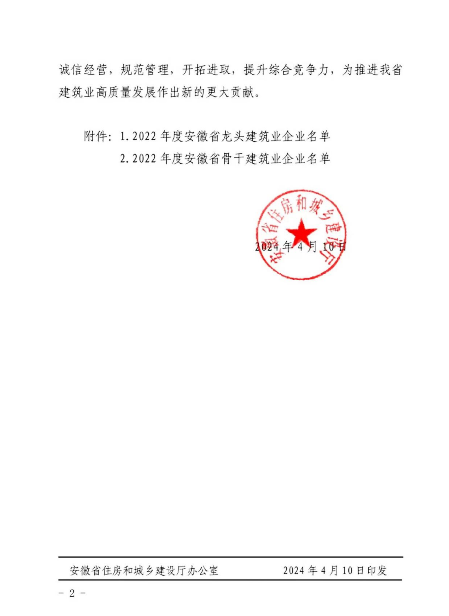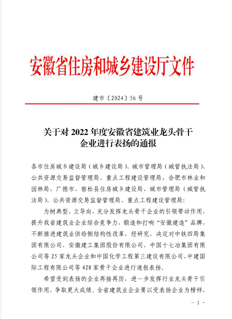 近日,安徽省住房和城鄉(xiāng)建設(shè)廳發(fā)布了“關(guān)于對2022年度安徽省建筑業(yè)龍頭骨干企業(yè)進行表揚的通報”,建工檢測及所屬子公司環(huán)通檢測榮登“骨干企業(yè)”榜單。