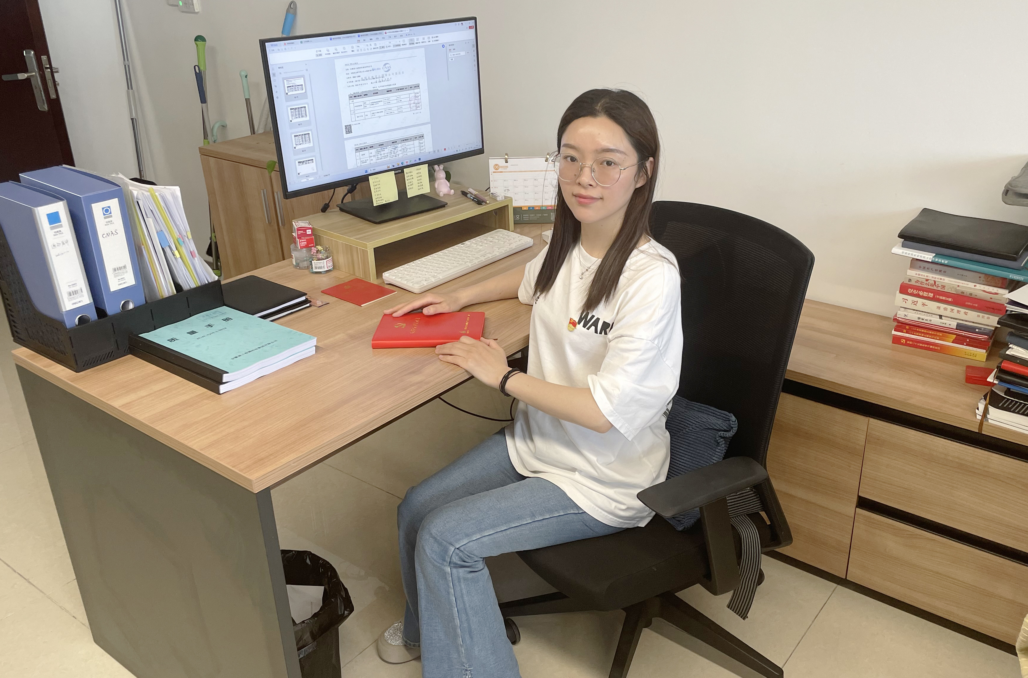 蔡夢(mèng)雅  女,中共黨員,碩士研究生學(xué)歷,現(xiàn)任建工檢測(cè)科技質(zhì)量部主辦、機(jī)關(guān)黨支部第二黨小組組長。