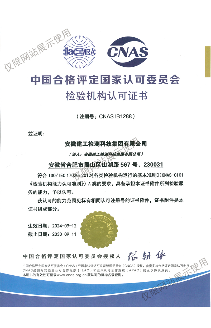 CNAS檢驗機構(gòu)認可證書