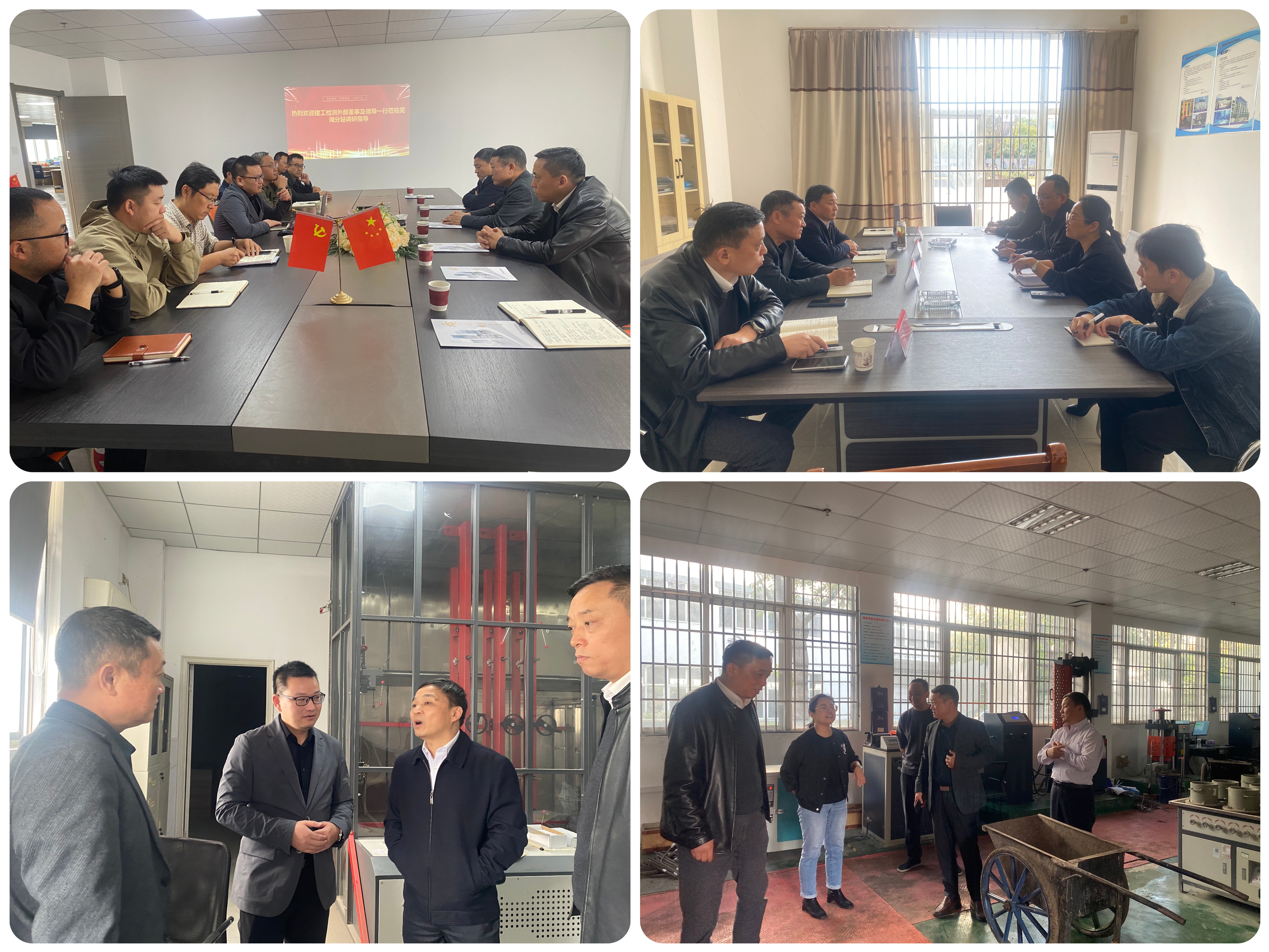 近日,胡運春、王軍、仇多維三位專職外派董事赴建工檢測池州分站、蕪湖分站、蕪湖市建昌工程質(zhì)量檢測中心有限公司等地調(diào)研。