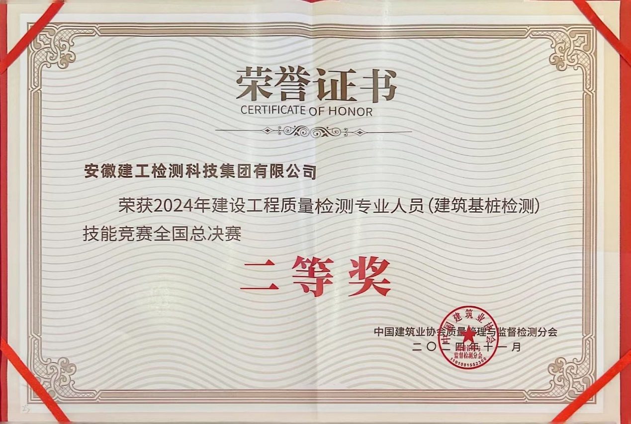 近日,在湖北武漢舉辦的2024年建設(shè)工程質(zhì)量檢測(cè)專業(yè)人員(建筑基樁檢測(cè))技能競(jìng)賽全國(guó)總決賽上,建工檢測(cè)代表隊(duì)勇奪二等獎(jiǎng)。