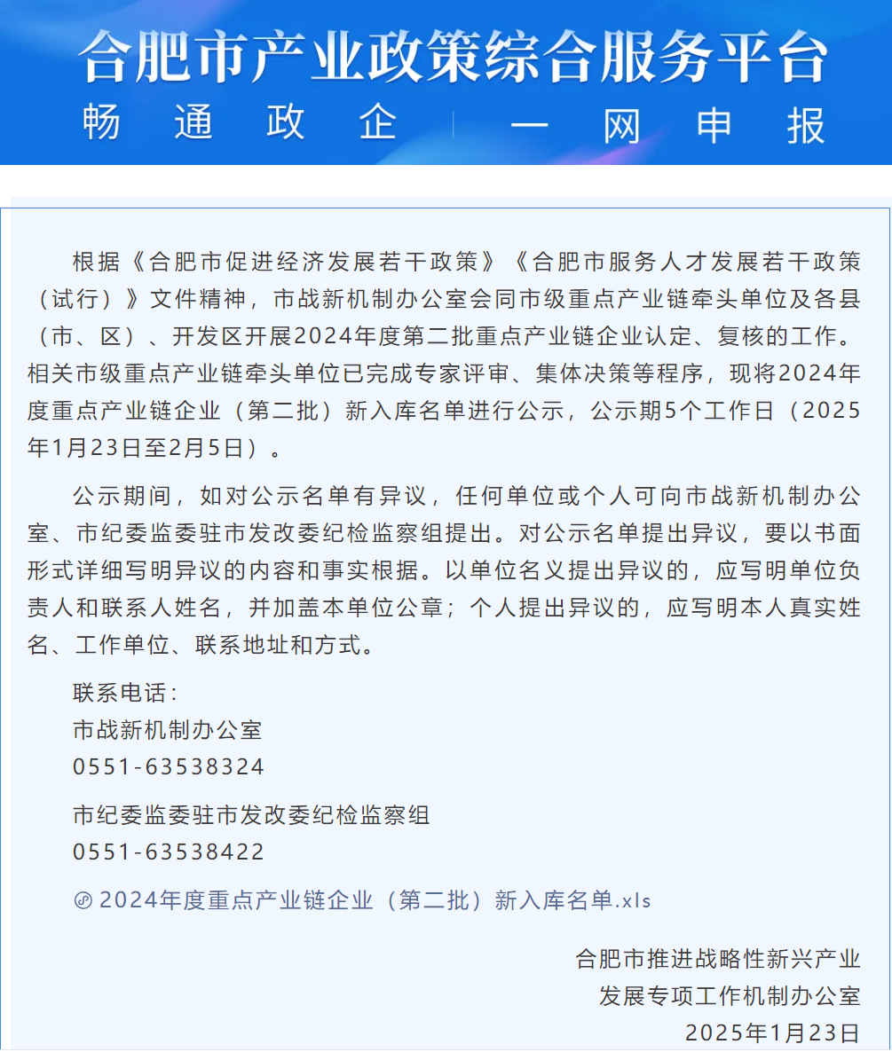 合肥市重點(diǎn)產(chǎn)業(yè)鏈企業(yè)入庫認(rèn)定旨在大力推動(dòng)產(chǎn)業(yè)鏈優(yōu)化升級(jí),切實(shí)提升產(chǎn)業(yè)鏈水平和產(chǎn)業(yè)基礎(chǔ)能力,著重培育具有競(jìng)爭(zhēng)力的產(chǎn)業(yè)集群。集中對(duì)集成電路、新型顯示、量子、網(wǎng)絡(luò)與信息安全、城市安全、空天信息、人工智能、新能源汽車和智能網(wǎng)聯(lián)汽車、生物醫(yī)藥、新材料、高端裝備、節(jié)能環(huán)保、光伏及新能源、綠色食品及現(xiàn)代種業(yè)、創(chuàng)意文化、智能家電等16個(gè)重點(diǎn)產(chǎn)業(yè)鏈企業(yè)集中開展入庫認(rèn)定及在庫復(fù)核工作,路港通公司均符合運(yùn)營情況、信用情況、產(chǎn)業(yè)類型等方面相關(guān)要求條件。