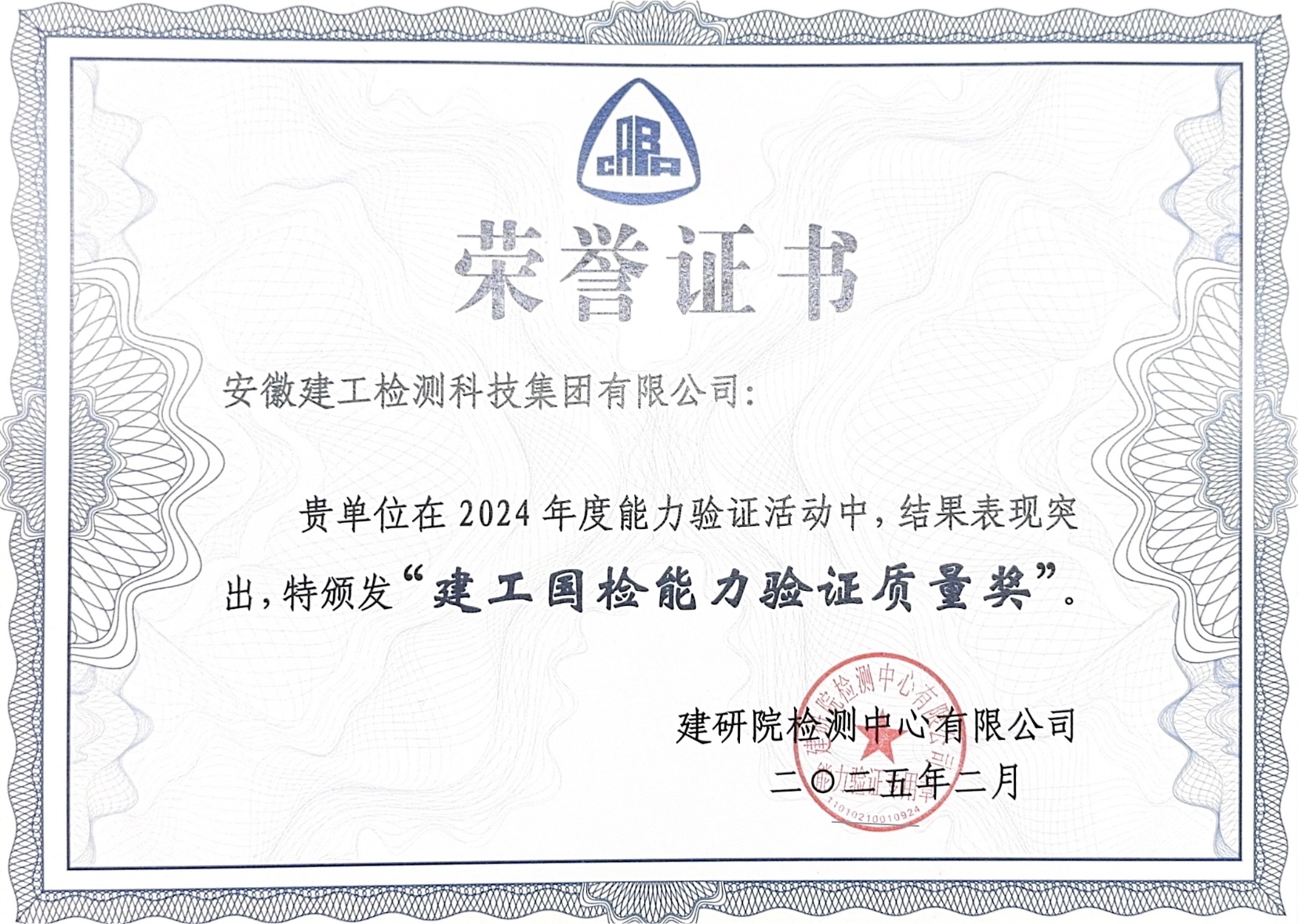 建工檢測(cè)獲“建工國(guó)檢能力驗(yàn)證質(zhì)量獎(jiǎng)”