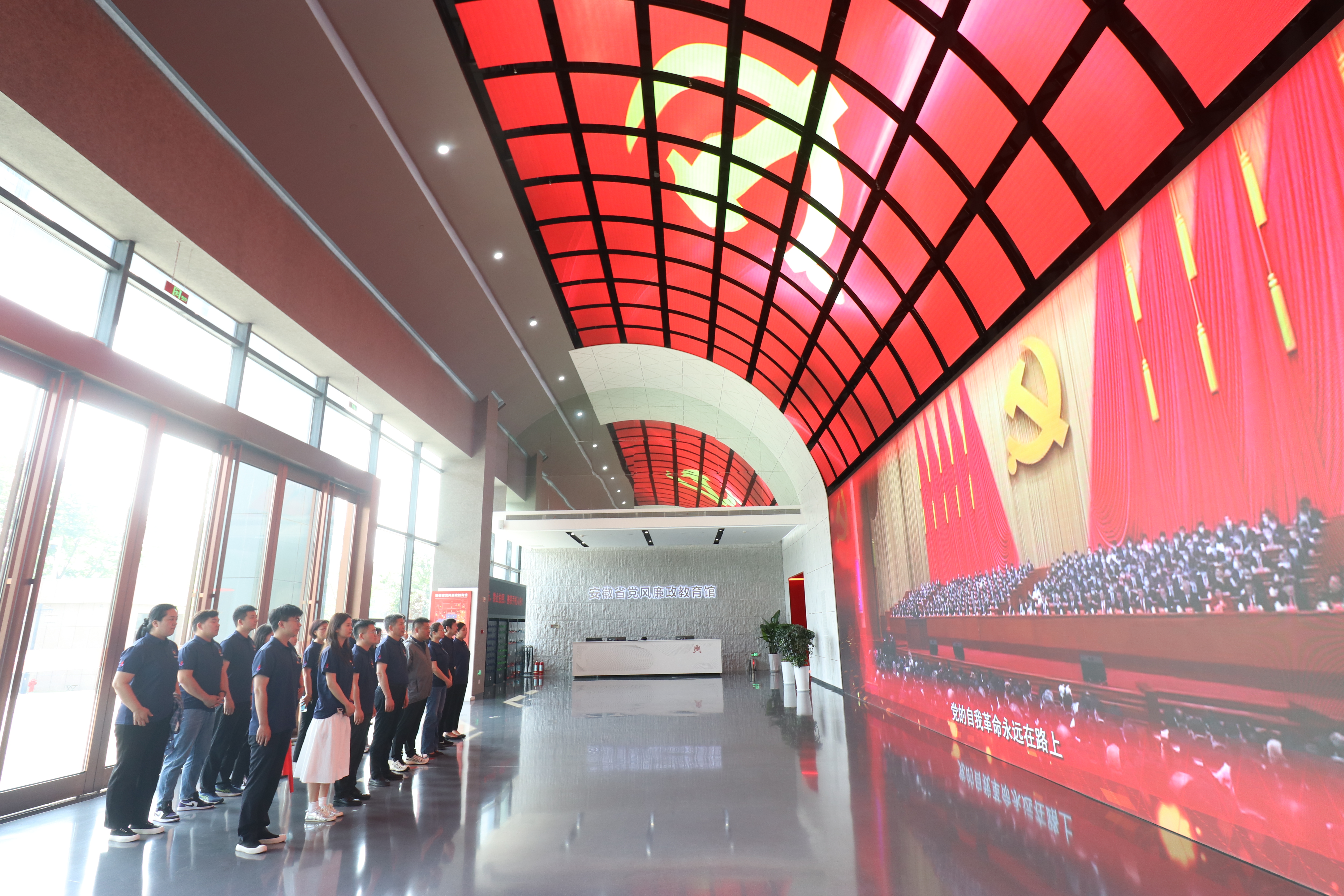 在講解員的帶領(lǐng)下,大家依次參觀了各展廳。各展廳通過(guò)豐富的圖文資料、互動(dòng)查詢(xún)、場(chǎng)景還原、體驗(yàn)空間等形式,讓在場(chǎng)黨員干部和青年職工代表深入了解了中國(guó)共產(chǎn)黨篳路藍(lán)縷的百年紀(jì)律建設(shè)史,深刻感受到黨的十八大以來(lái)全面從嚴(yán)治黨取得的輝煌成就以及安徽省黨風(fēng)廉政建設(shè)和反腐敗斗爭(zhēng)的成果。