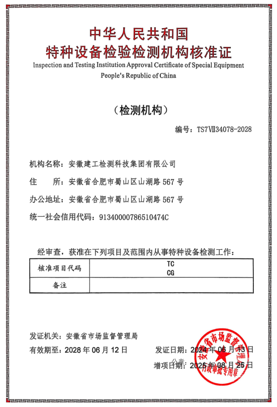此項(xiàng)資質(zhì)獲得后,公司成為安徽省內(nèi)唯一符合城市更新鋼制壓力管道焊縫檢測驗(yàn)收標(biāo)準(zhǔn)的檢測機(jī)構(gòu)(同時(shí)滿足特種設(shè)備無損檢測專項(xiàng)資質(zhì)許可、建設(shè)工程質(zhì)量檢測機(jī)構(gòu)核準(zhǔn)、人員資質(zhì)配備、CMA 資質(zhì)認(rèn)定四個(gè)方面驗(yàn)收要求)。