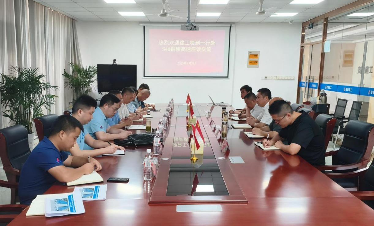 雙方就集團(tuán)特許經(jīng)營項目高質(zhì)量建設(shè)保障工作開展情況進(jìn)行深入交流,進(jìn)一步壓實責(zé)任、細(xì)化舉措,全面落實“保檢測”工作,為集團(tuán)重點項目高質(zhì)量推進(jìn)提供堅實檢測保障。會后,郭楊一行到S40銅陵段2標(biāo)段工地試驗室調(diào)研。