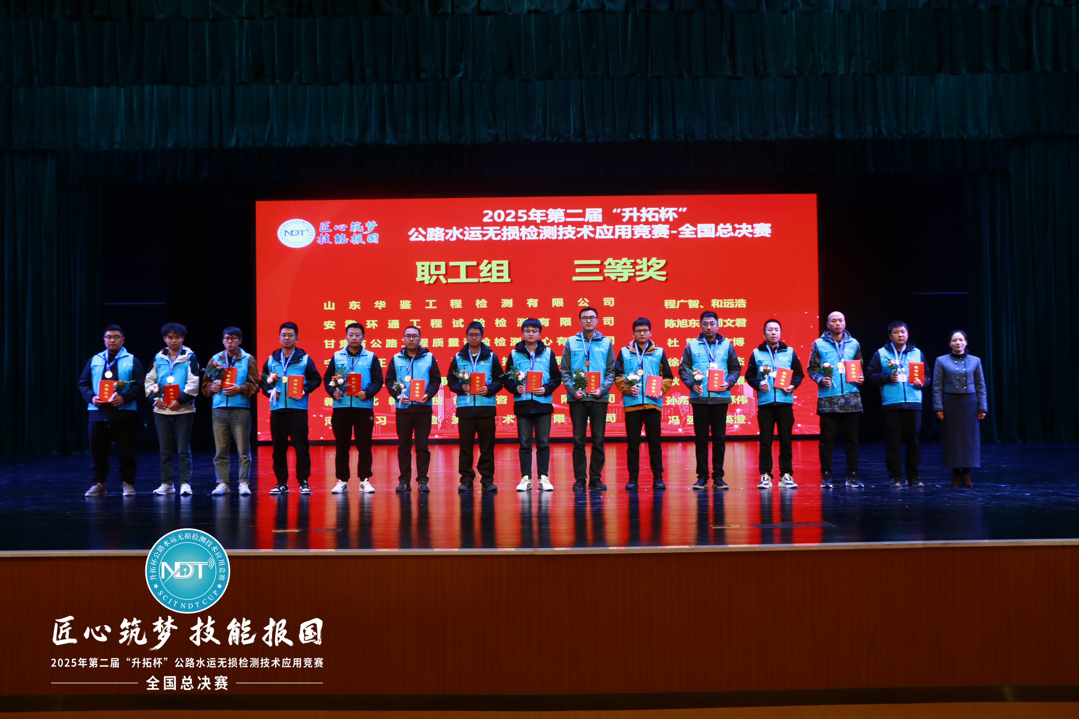 10月15日,2025年第二屆“升拓杯”公路水運(yùn)無損檢測技術(shù)應(yīng)用競賽全國總決賽在蘭州圓滿落幕,公司所屬環(huán)通公司代表隊?wèi){借扎實(shí)的理論功底與出色的現(xiàn)場表現(xiàn),成功斬獲職工組三等獎!