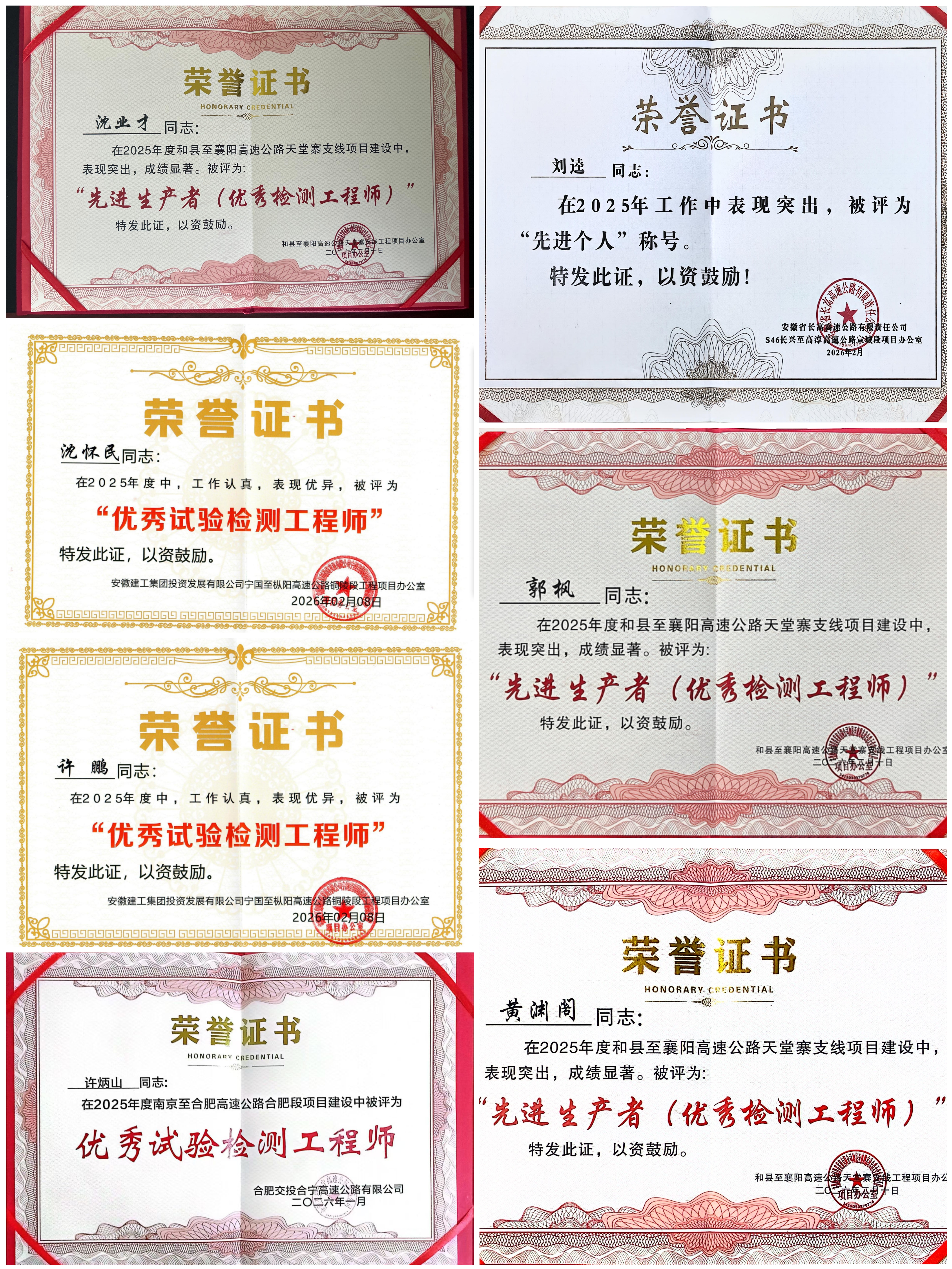 近日,環(huán)通檢測項目試驗室再傳喜訊,多名員工榮獲業(yè)主單位表彰,斬獲先進個人榮譽稱號,用實干與擔(dān)當(dāng)贏得了業(yè)主的高度認可與贊譽。