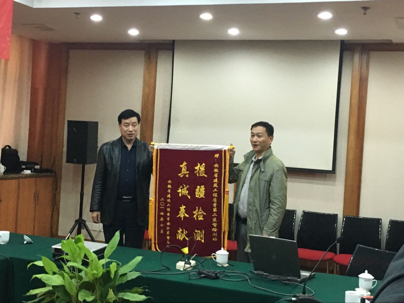 10月21日,省住建廳綜合計劃處處長尹宗軍、省質(zhì)安監(jiān)督總站站長程德旺在良苑酒店五樓安徽廳親切看望和慰問援疆工作組成員,程總長代表質(zhì)安監(jiān)督總站向援疆工作組授予錦旗和贈送慰問品。