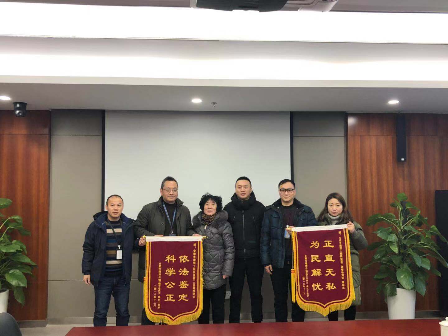 近日,合肥市瑞地公館的業(yè)主吳曉霞等三人冒著寒冷專程來到安徽建科質(zhì)檢二站,送來繡有“科學公正,依法鑒定”、“為民解憂、正直無私”的兩面錦旗,對我院質(zhì)檢二站及蔡曉東項目組提供的“公正、科學、優(yōu)質(zhì)”的技術(shù)服務表示感謝。