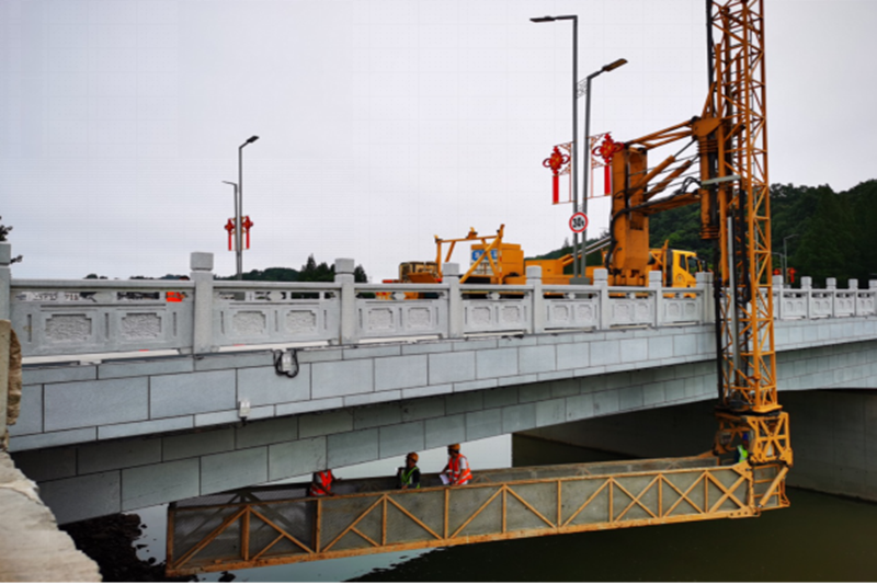 7月7日,全國重點(diǎn)文物保護(hù)單位—黃山鎮(zhèn)海橋受洪水持續(xù)沖刷及長時(shí)間高水位浸泡慘遭水毀,讓人扼腕嘆息。7月16日,為了解鎮(zhèn)海橋上游兩座橋梁黎陽橋、桃花島大橋結(jié)構(gòu)安全狀況,確保黃山市民出行安全,道橋所受黃山市市政工程管理處委托對(duì)上述兩座橋梁進(jìn)行檢測(cè)。接到委托后,道橋所檢測(cè)人員第一時(shí)間冒雨趕赴現(xiàn)場(chǎng)勘察,發(fā)現(xiàn)人行道寬度達(dá)到3米,常規(guī)橋檢車無法使用,同時(shí)上、下游橋梁或損毀、或維修暫停使用,導(dǎo)致待檢測(cè)橋梁交通流量大,不利于現(xiàn)場(chǎng)檢測(cè)工作實(shí)施。針對(duì)發(fā)現(xiàn)的問題,道橋所現(xiàn)場(chǎng)檢測(cè)人員及時(shí)調(diào)整檢測(cè)方案,連夜從外省調(diào)配適用的橋檢車,并積極與交警部門聯(lián)動(dòng),合理組織、管制交通。為盡量減小檢測(cè)工作對(duì)市民出行的影響,現(xiàn)場(chǎng)人員將檢測(cè)時(shí)間定在凌晨四點(diǎn)。通過仔細(xì)全面的檢測(cè)、排查,給橋梁做了一次全身體檢,為市民安全出行保駕護(hù)航。