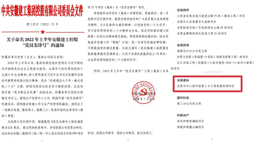 近日,從集團(tuán)傳來喜訊,我院合肥市中心圖書館第三方工程質(zhì)量檢測項目被安徽建工控股黨委授予“黨員先鋒號”稱號。