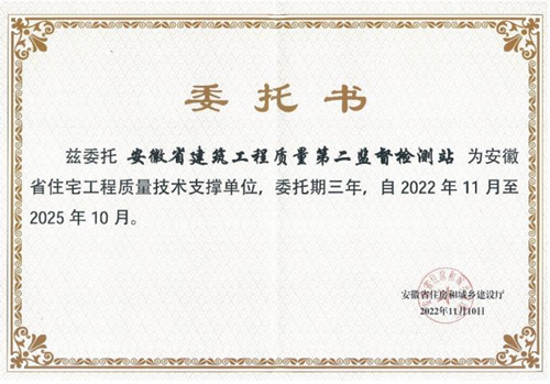 喜訊!質(zhì)檢二站受聘“安徽省住宅工程質(zhì)量技術(shù)支撐單位”