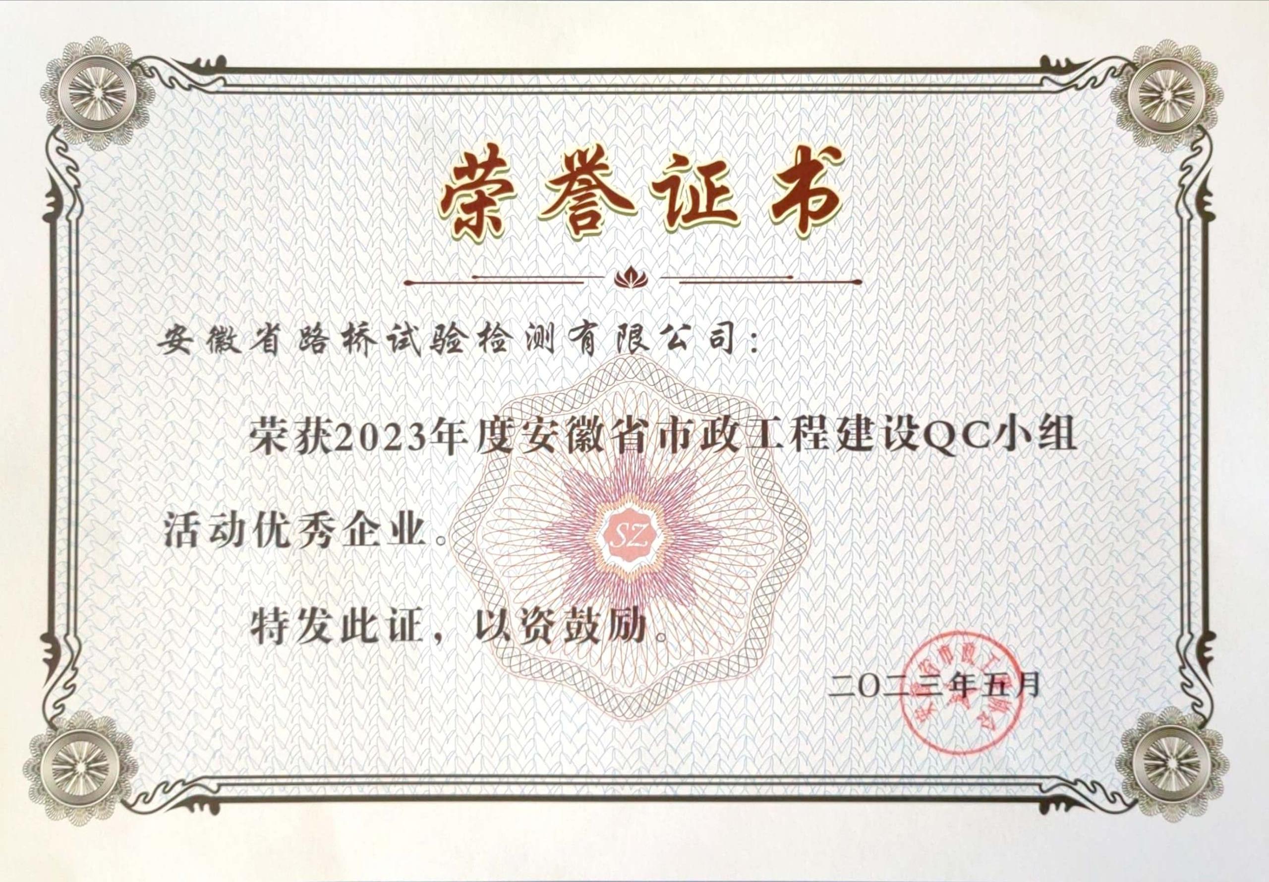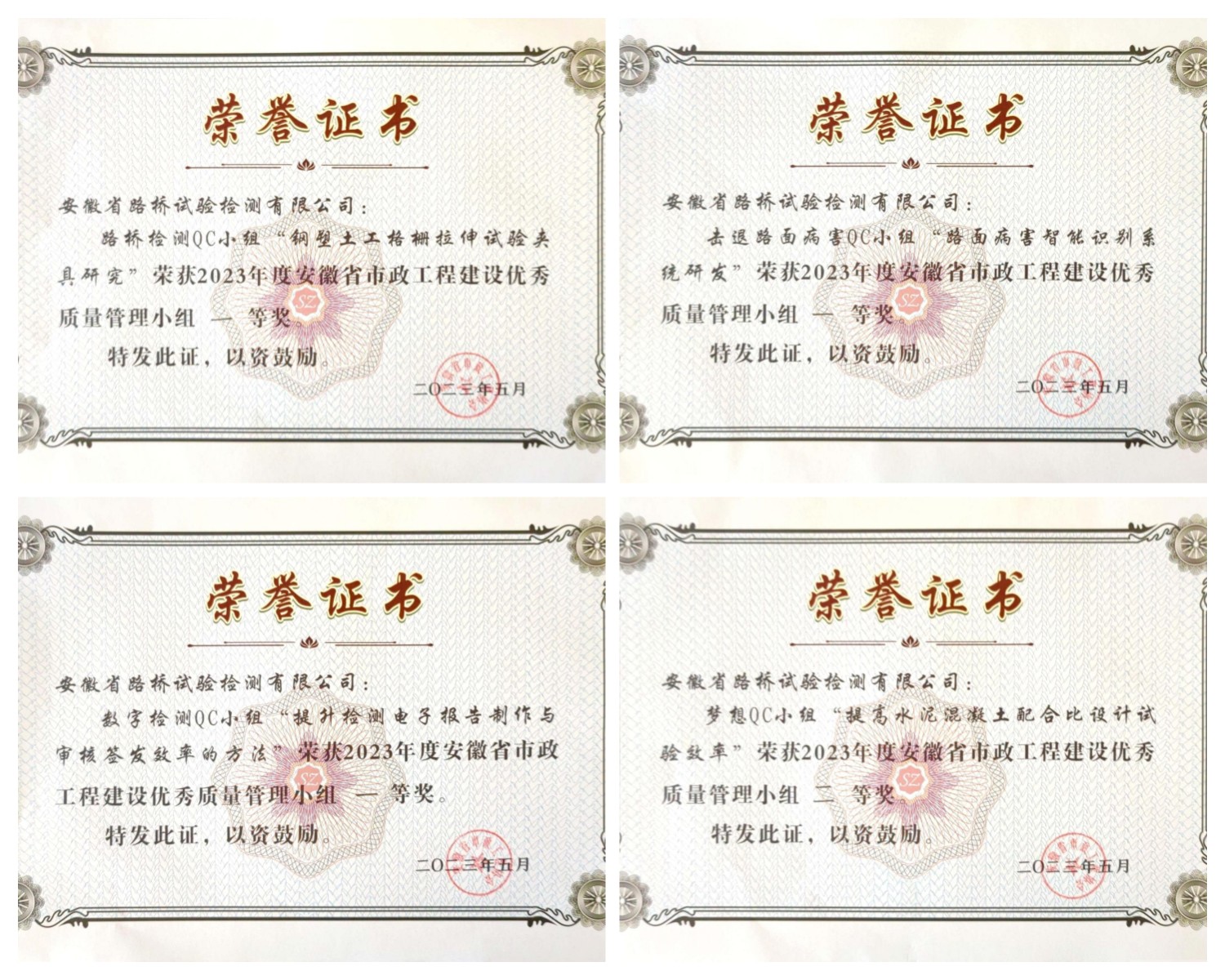 安徽省路橋試驗(yàn)檢測(cè)有限公司喜獲2023年安徽省QC小組多項(xiàng)榮譽(yù)